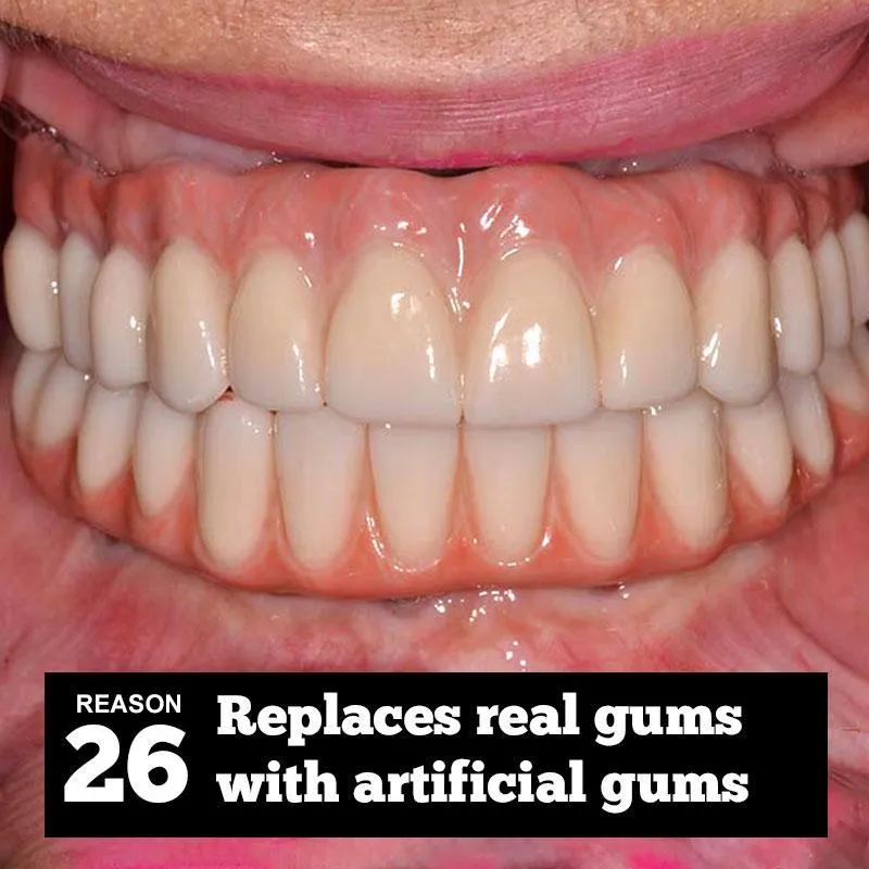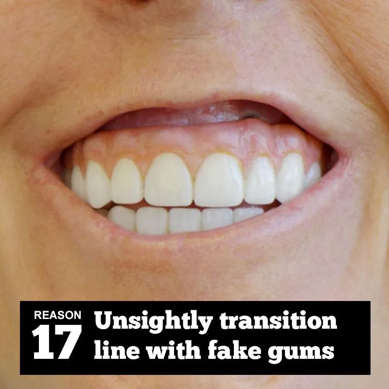 If you pull back the lips, people will see the artificial gums that have replaced where your real gums used to be.